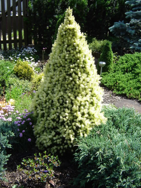 Применение: Благодаря миниатюрным размерам и раннелетнему убранству, маленькая елочка может стать прекрасным солитером в вересковом саду, а также составить компанию другим карликовым хвойным и травянистым растениям в альпинарии.